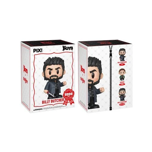 Oi! This Pix! figure features Billy Butcher with his dark, messy brown hair, wearing his signature long black trench coat layered over a dark floral button-up, clenching his fist and holding his iconic electric taser rod. This limited-edition The Boys Billy Butcher Pix! Vinyl Figure has a chance of a ultra-rare 24-piece chase of Billy Butcher with his parasite tendrils emerging from his chest! All The Boys PIX! figures comes with a Certificate of Authenticity in the form of a laser printed, spot varnished collector's card, and are ready to stack with the rest of your collection. Look out for 1-of-6 odds of a chase featuring Hughie! Don’t wait, grab Billy Butcher before the chaos starts! Ages 15 and up.